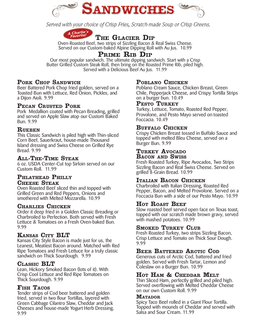 We are visitors in town and ate at Nickel Charlie's last night. It was very good. The clam chowder is super! We had the New England Fish Fry and the Cobb Salad. Big portions, well cooked, tasty - what more can we say? If we're in Kalispell again we'll go there for sure.